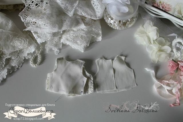 Мне захотелось украсить верх платья кружевом, для этого его надо наметать к нашим выкроенным деталям.